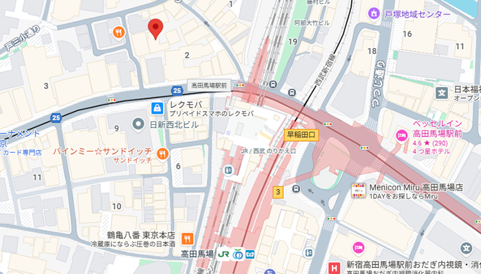 | 住所 | 〒169-0075 東京都新宿区高田馬場3丁目2-14 天翔高田馬場ビル102号 [地図] |